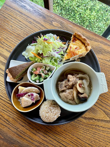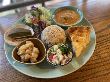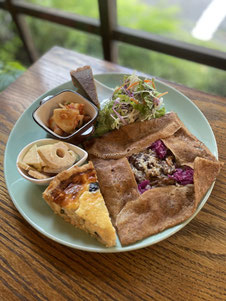 キッシュと無農薬サラダに日替わりの野菜惣菜、その日のチキンも!