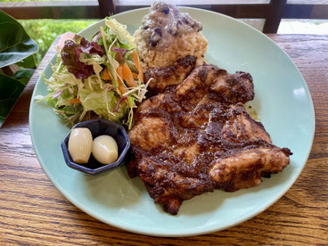ガーリックが効いた甘辛味のハワイアンチキン、